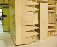 設(shè) 計(jì):在充分了解客戶的需求后,良邦公司根據(jù)ISO3745-2003、GB6882 和 ISO7779 等標(biāo)準(zhǔn)對(duì)消聲室進(jìn)行設(shè)計(jì)。設(shè)計(jì)中的聲學(xué)指標(biāo)包括本底噪聲、截止頻率、可用空間、減振等。在滿足聲學(xué)指標(biāo)的前提下,設(shè)計(jì)中同時(shí)考慮使用的方便性、尖劈門(下面重點(diǎn)介紹)、組件(產(chǎn)品)的安裝與搬運(yùn)、通風(fēng)狀況、儀器的走線、監(jiān)控條件、室內(nèi)環(huán)境等。良邦公司設(shè)計(jì)的每一個(gè)消聲室都是室內(nèi)裝修的精品。