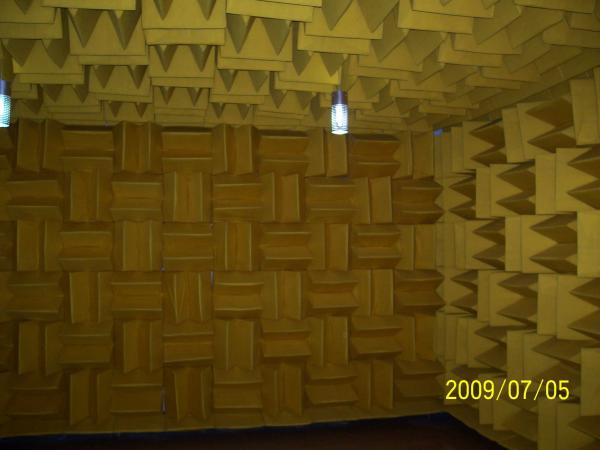 消聲室(半消聲室)就是在一個(gè)閉合空間內(nèi)建立自由聲場,在這個(gè)空間內(nèi),傳播聲波的介質(zhì)均勻地向各個(gè)方向無限延伸,使聲源輻射的聲能“自由”地傳播,即無障礙物的反射,也無環(huán)境噪聲的干擾。消聲室根據(jù)測試對(duì)象的狀況和測試內(nèi)容,以及所要求的精度分為全消聲室和半消聲室,消聲室房間的六個(gè)界面全鋪吸聲材料的,稱為全消室.消 聲室房間的六個(gè)界面中有五個(gè)面鋪吸聲材料的,稱為半消室。